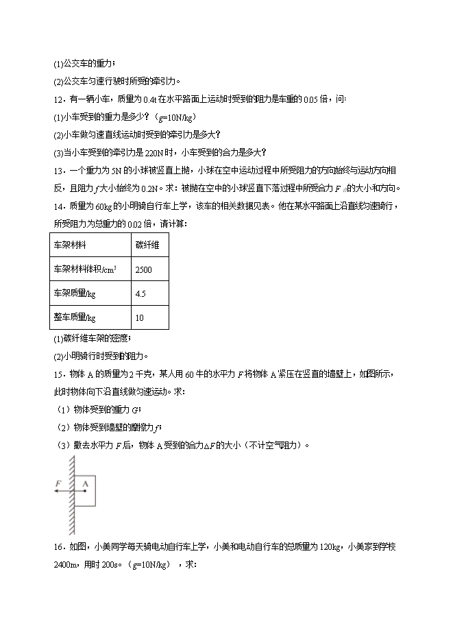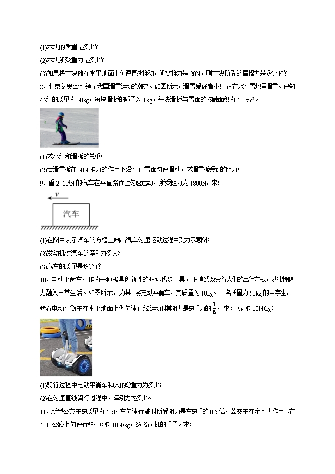 【内容简介】第八章 运动和力(计算题30道)--2025-2026学年人教版八年级物理全册热点题型专练