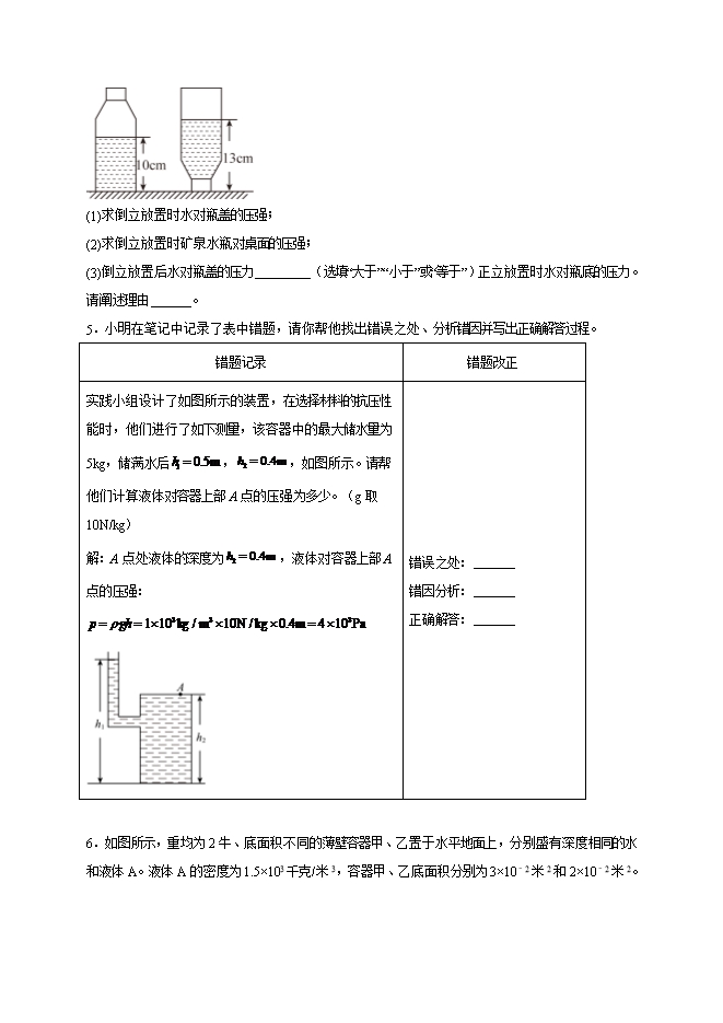第九章 压强(综合题30道)--2025-2026学年人教版八年级物理全册热点题型专练