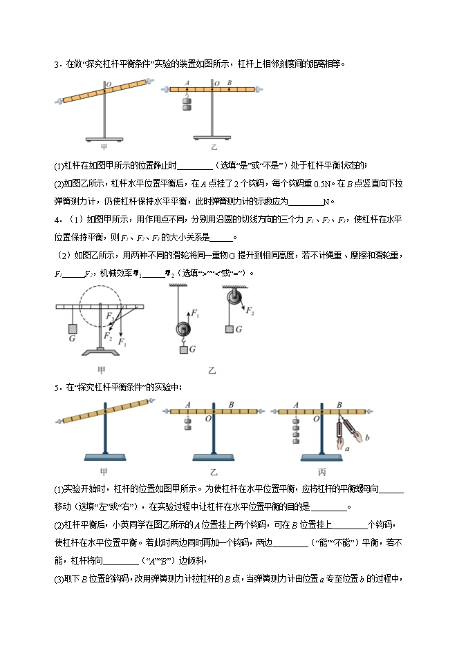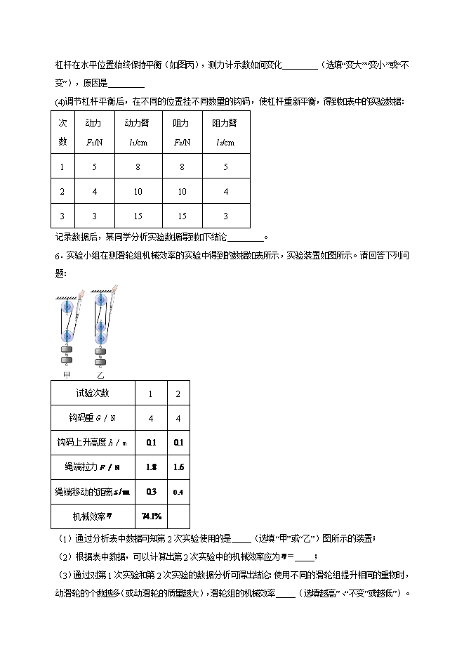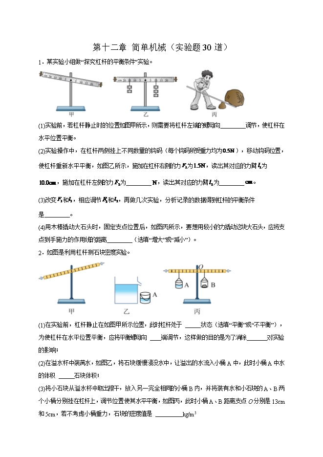 【内容简介】第十二章 简单机械(实验题30道)--2025-2026学年人教版八年级物理全册热点题型专练