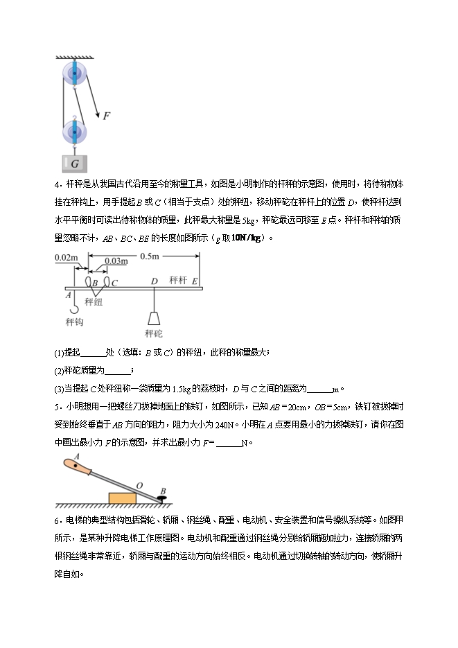 - 81第十二章 简单机械(填空题100道)--2025-2026学年人教版八年级物理全册热点题型专练
