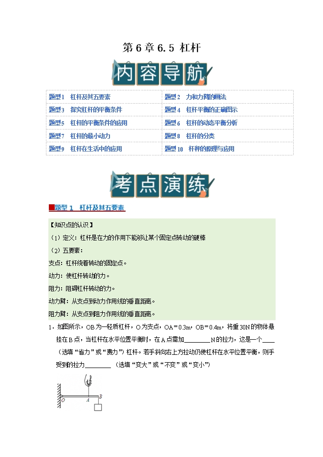 【内容简介】第6章 6.5 杠杆--2025-2026学年沪粤版物理八年级下册同步考点演练