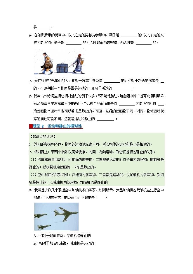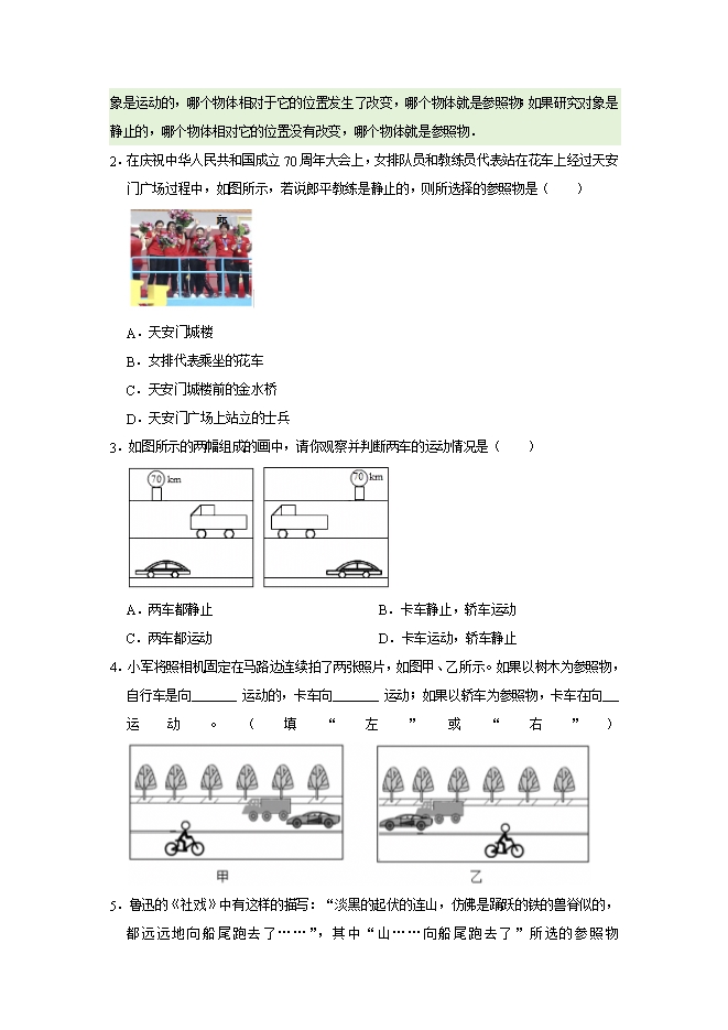第7章 7.1 运动的描述--2025-2026学年沪粤版物理八年级下册同步考点演练