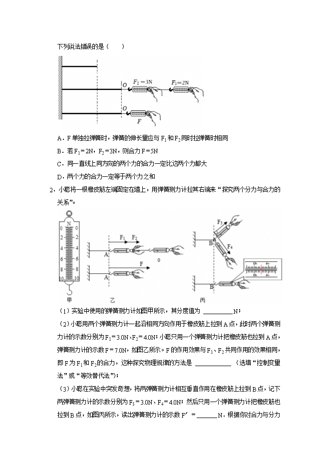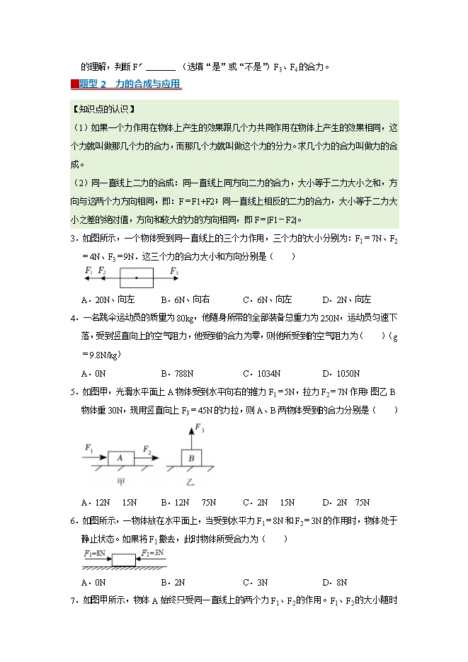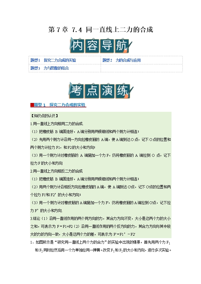 【内容简介】第7章 7.4 同一直线上二力的合成--2025-2026学年沪粤版物理八年级下册同步考点演练