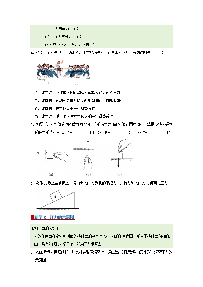 【内容简介】第8章 8.1 压强--2025-2026学年沪粤版物理八年级下册同步考点演练