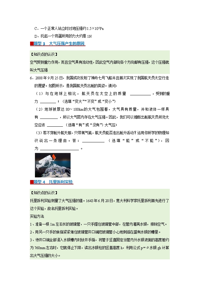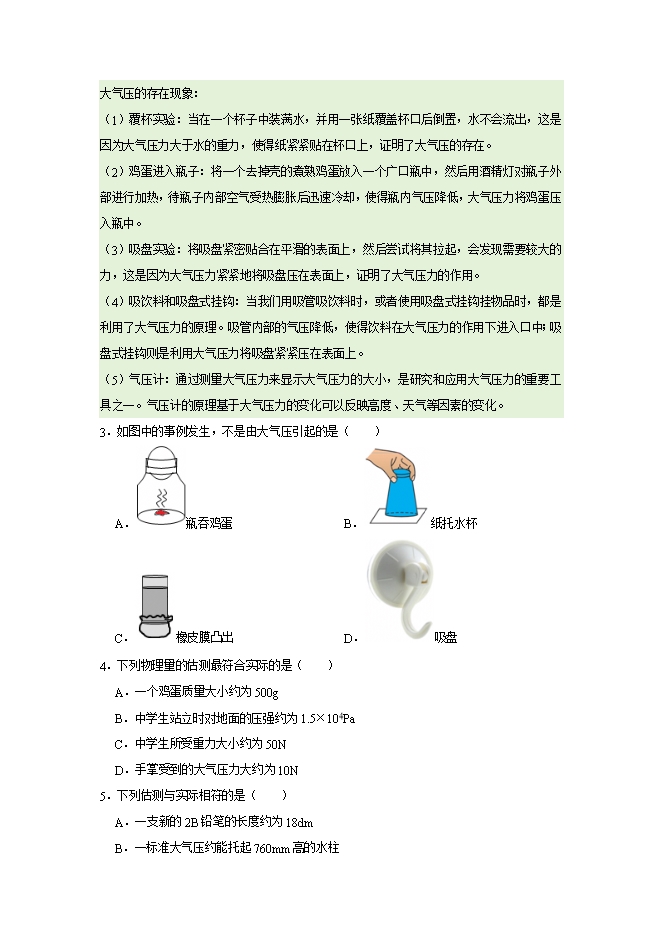 【内容简介】第8章 8.3 大气压强与人类生活--2025-2026学年沪粤版物理八年级下册同步考点演练