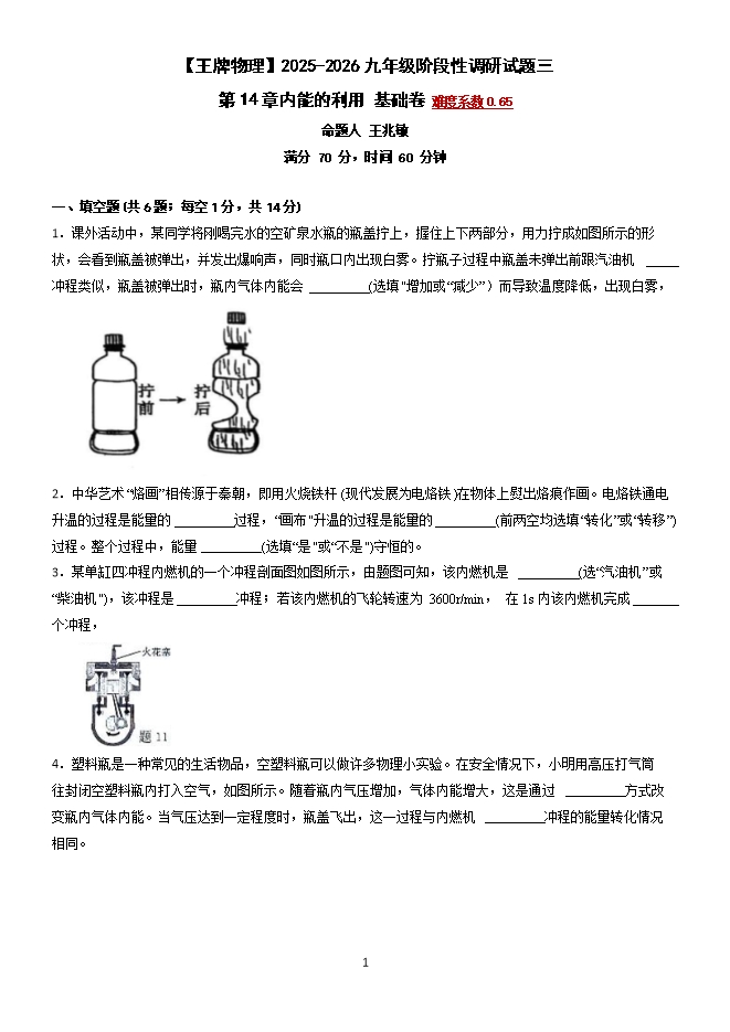【内容简介】第14章 内能的利用 专题训练--2025-2026学年九年级阶段性调研试题三(人教版)【王牌物理河南专版】