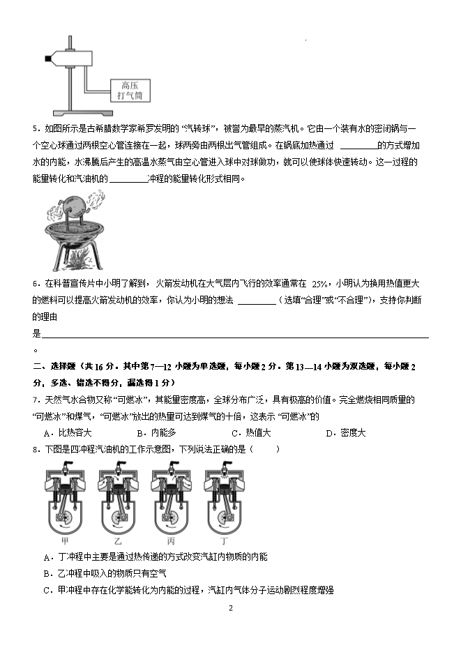 第14章 内能的利用 专题训练--2025-2026学年九年级阶段性调研试题三(人教版)【王牌物理河南专版】
