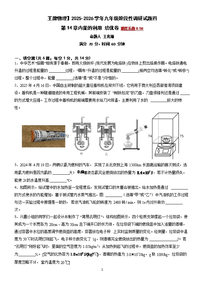【内容简介】第14章 内能的利用 培优训练--2025-2026学年九年级阶段性调研试题四(人教版)【王牌物理河南专版】
