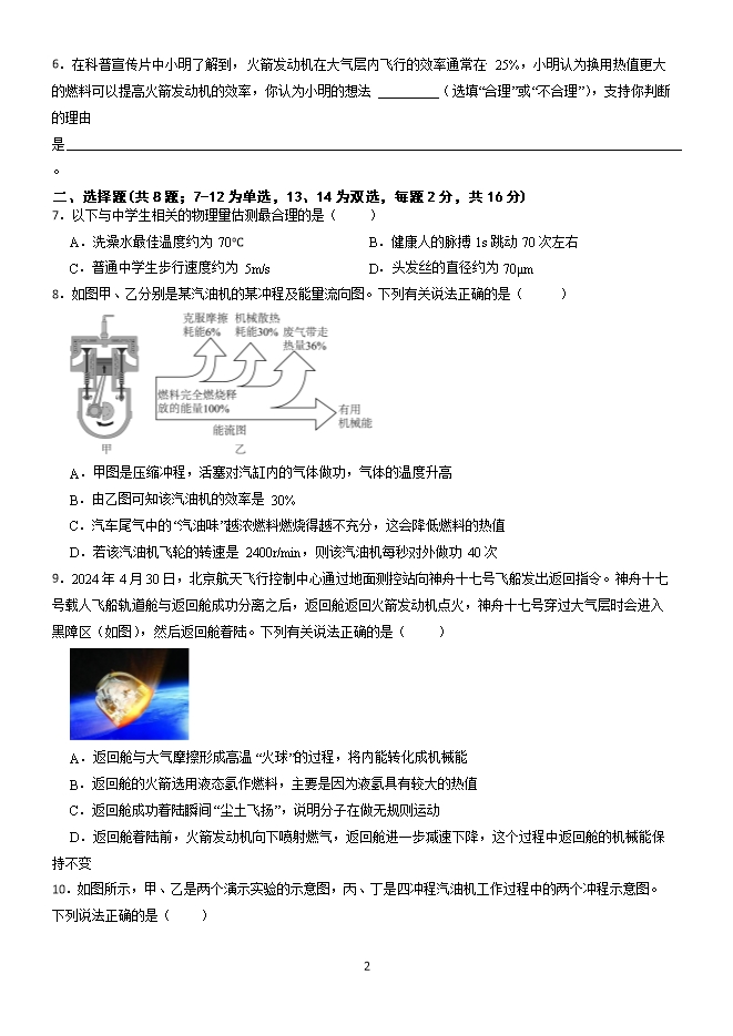 第14章 内能的利用 培优训练--2025-2026学年九年级阶段性调研试题四(人教版)【王牌物理河南专版】