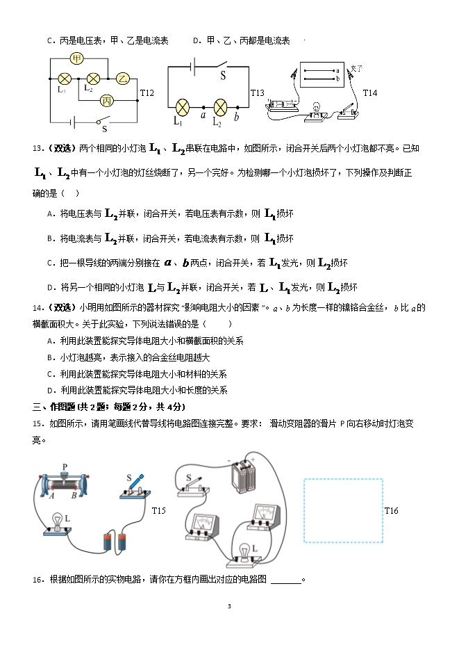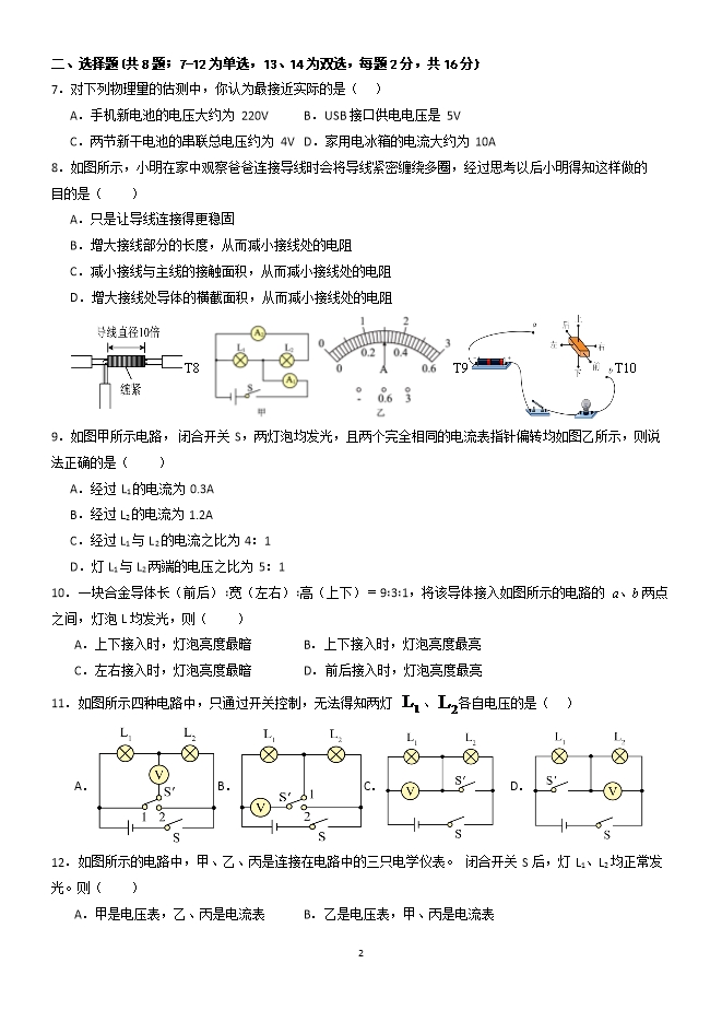 - 107第16章 电压 电阻 培优训练--2025-2026学年九年级阶段性调研试题十(人教版)【王牌物理河南专…
