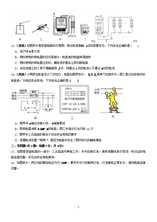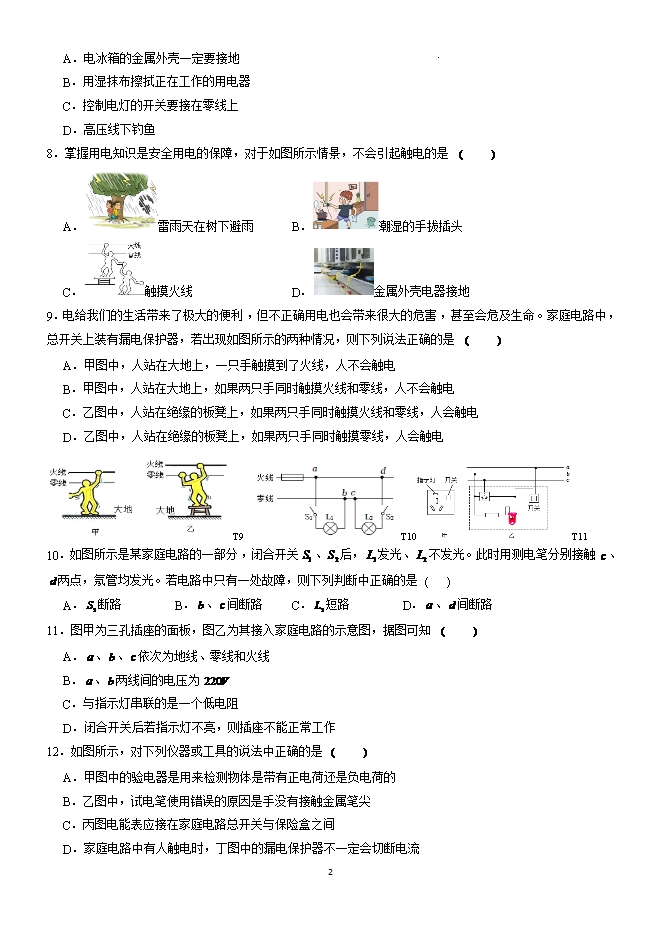第19章 生活用电 专题训练--2025-2026学年九年级阶段性调研试题十九(人教版)【王牌物理河南专版】