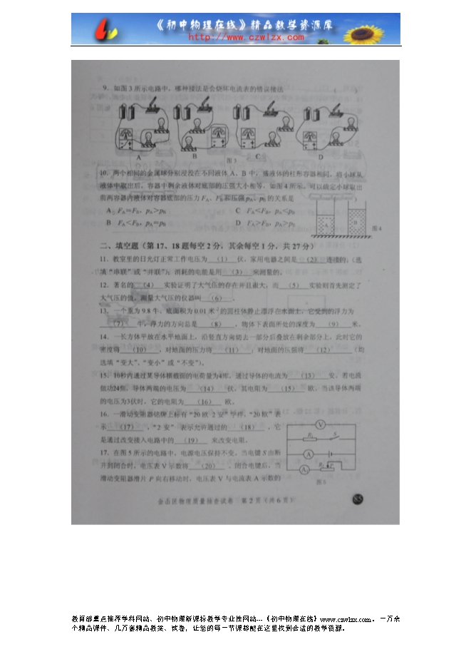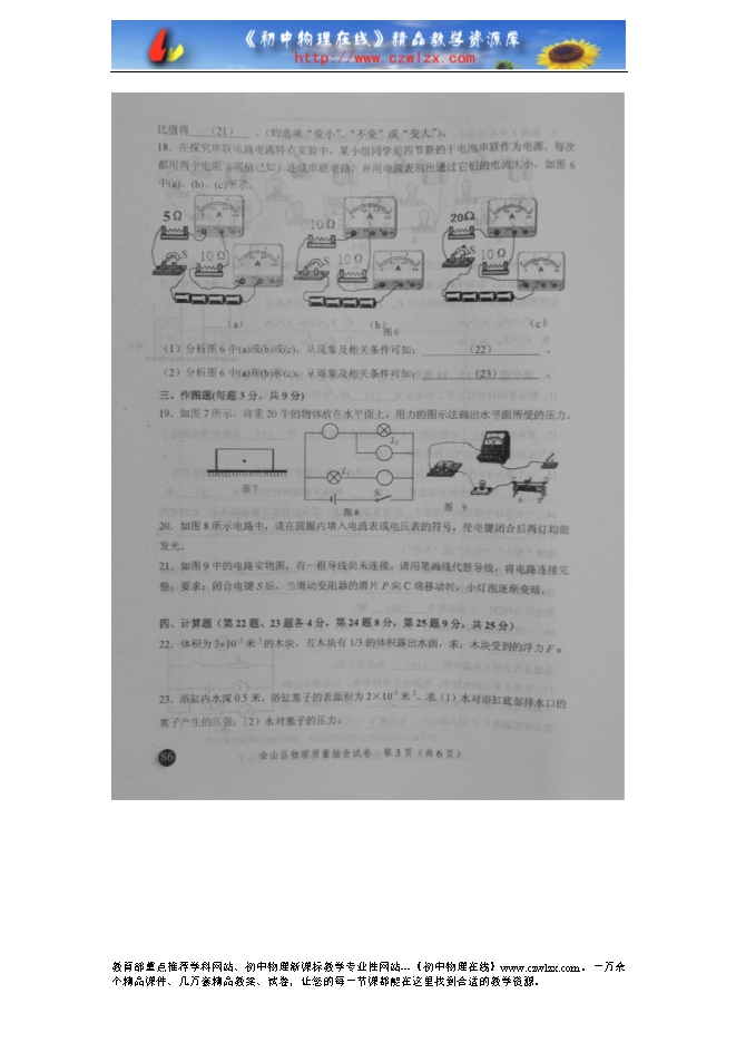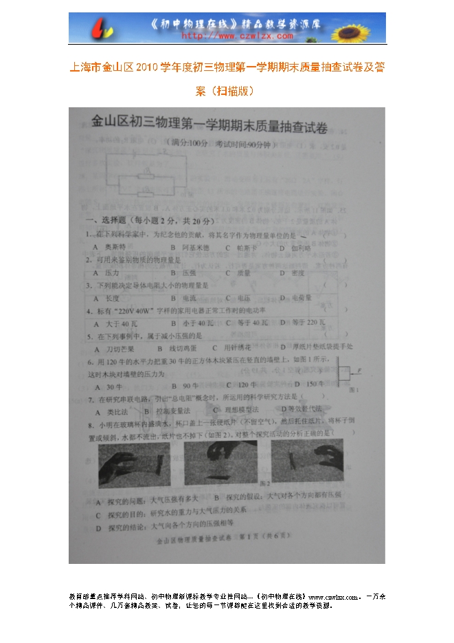 【内容简介】上海市金山区2010学年度初三物理第一学期期末质量抽查试卷及答案(扫描版) .............. ? ? ? ?