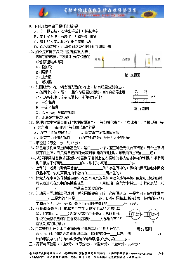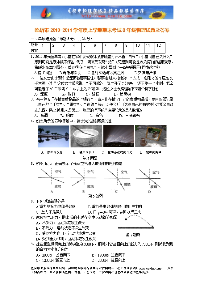 临沂市2010-2011学年度上学期期末考试8年级物理试题及答案