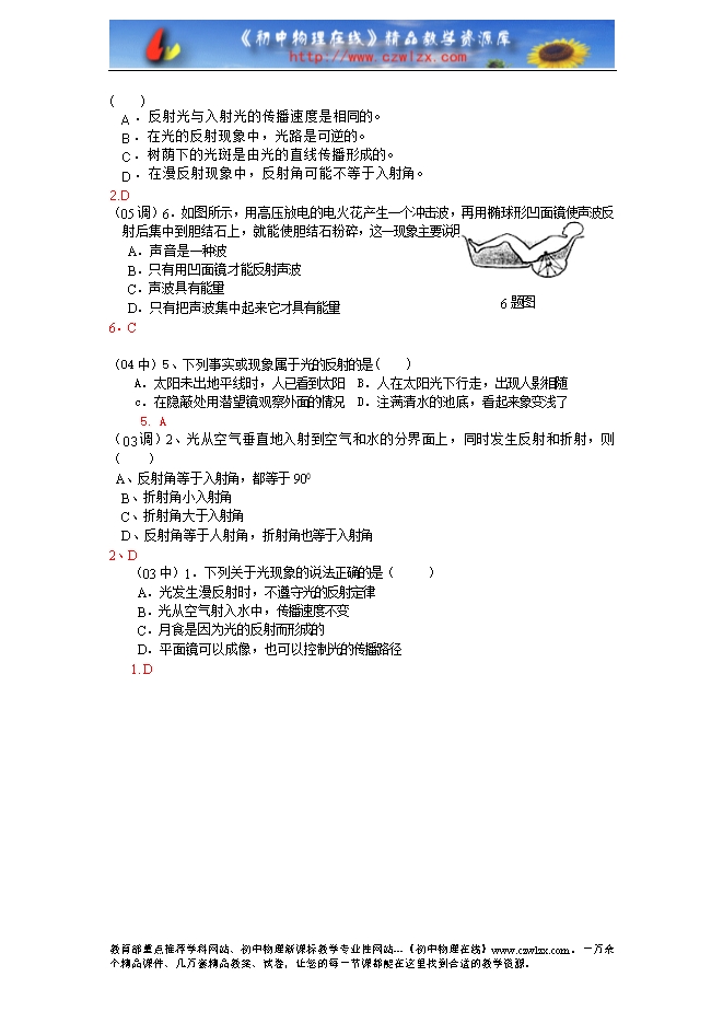 - 上一份试卷:黄冈市历年物理中考题调考题汇编--声现象