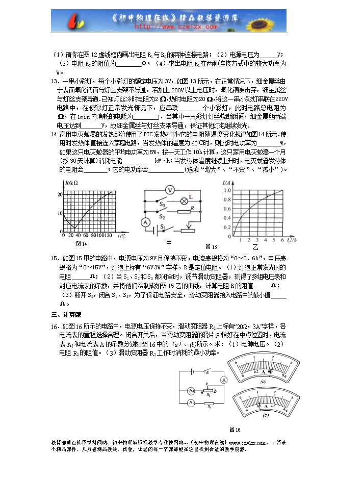 - 上一份试卷:十六中学初中2011级物理培优练习题(2)