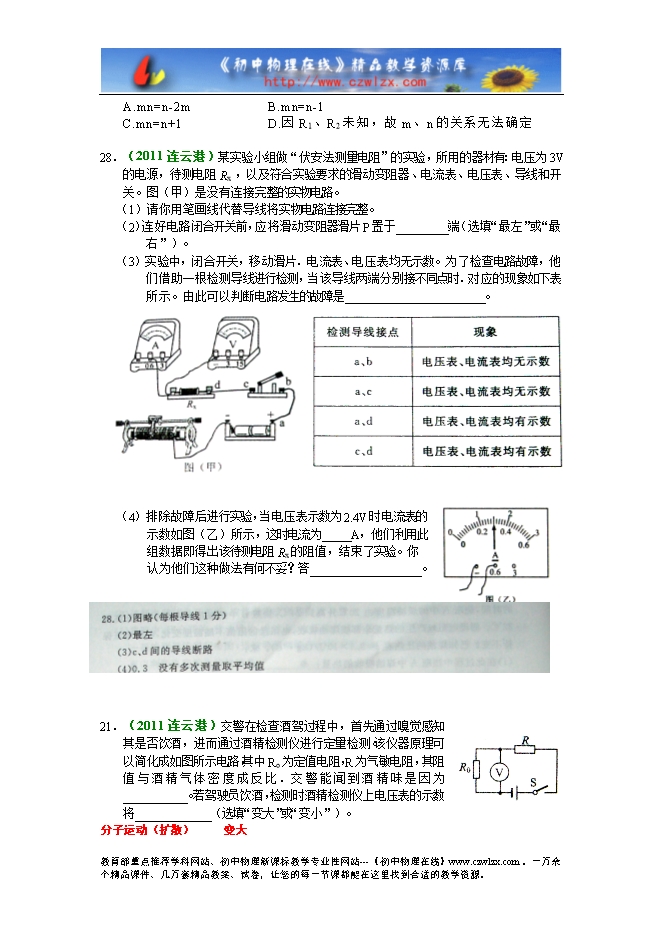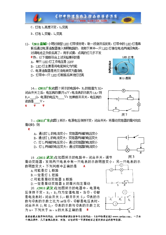 2011年物理中考题分类汇编(68套,有答案)--探究欧姆定律2