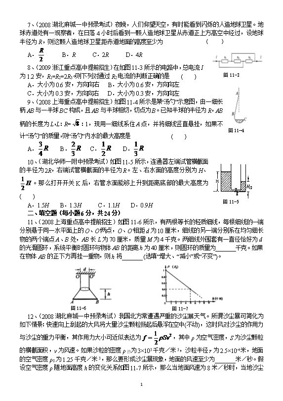 4、(2008湖北黄冈中学预录考试)在如图11-1所示的各电路中,能用滑动变阻器调节灯泡亮度的是( )