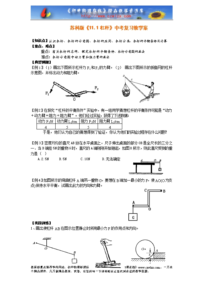 苏科版《11.1杠杆》中考复习教学案