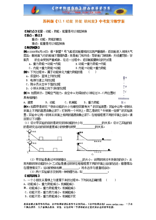 苏科版《12.1动能 势能 机械能》中考复习教学案