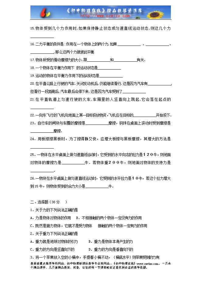 6.物体所受的重力是由于________而产生,重力的作用点叫物体的_____________。