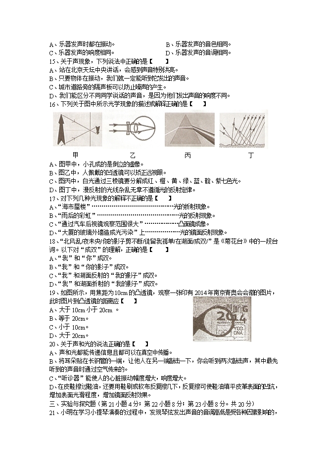 3、为了确定自己与爷爷的听觉差异,小华为此设计了以下两种实验方案,你认为最佳的方案是________(选题序号)。