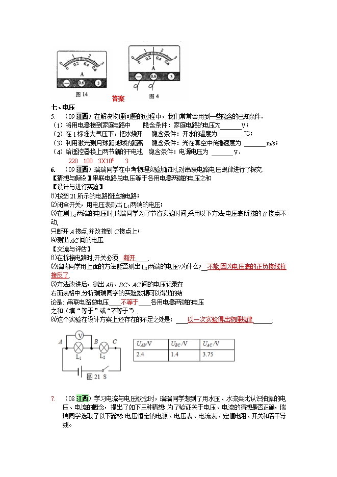 【内容简介】2008-2011四年江西中考试题分类汇编4: 简单电路