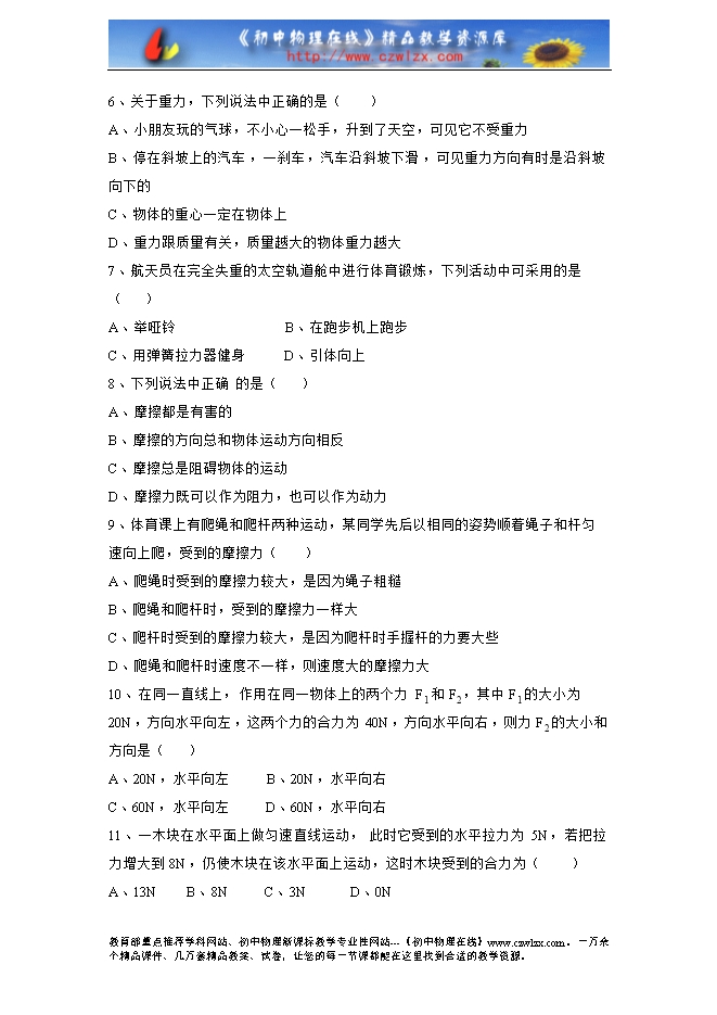 4、使用弹簧测力计时,下面必须注意的几点中不正确的是( )
