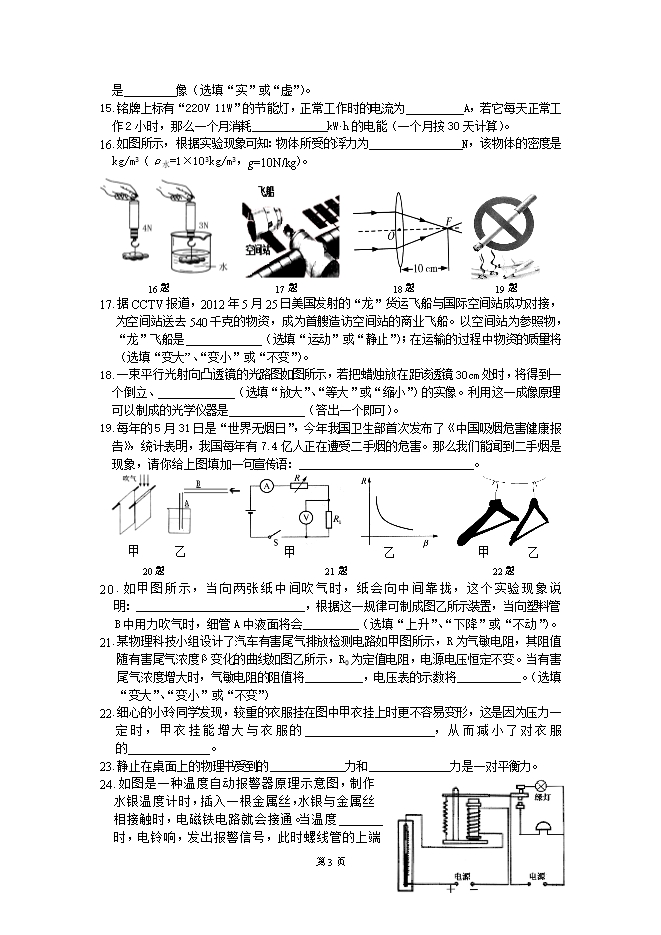 黑龙江省鸡西市2012年中考物理试题及答案(word版)