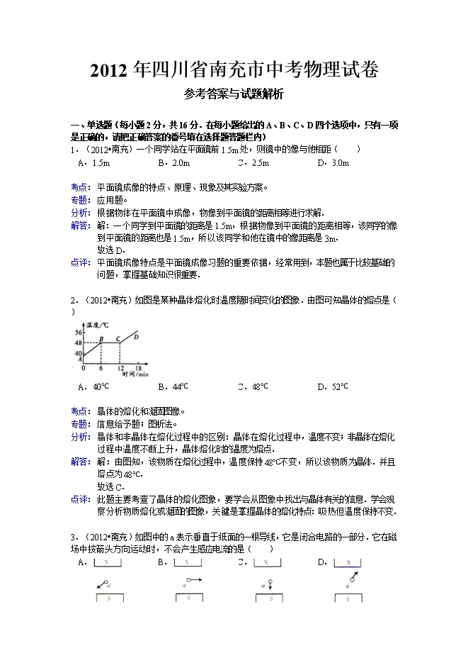 2.(2012•南充)如图是某种晶体熔化时温度随时间变化的图象.由图可知晶体的熔点是( )