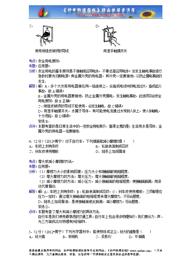 3.(2分)(2012•南宁)如图所示,符合完全用电原则的是( )