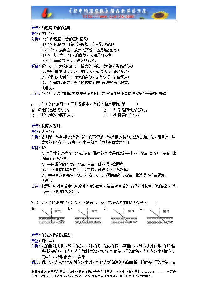 点评: 本题考查的简单的光学现象,比较基础,一般情况下记住相关的例子即可.