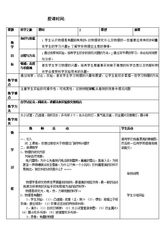 - 114序言 科学之旅--2021秋辽宁省鞍山市育才中学人教版八年级物理上册教学设计
