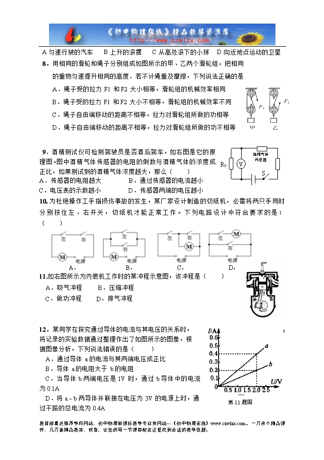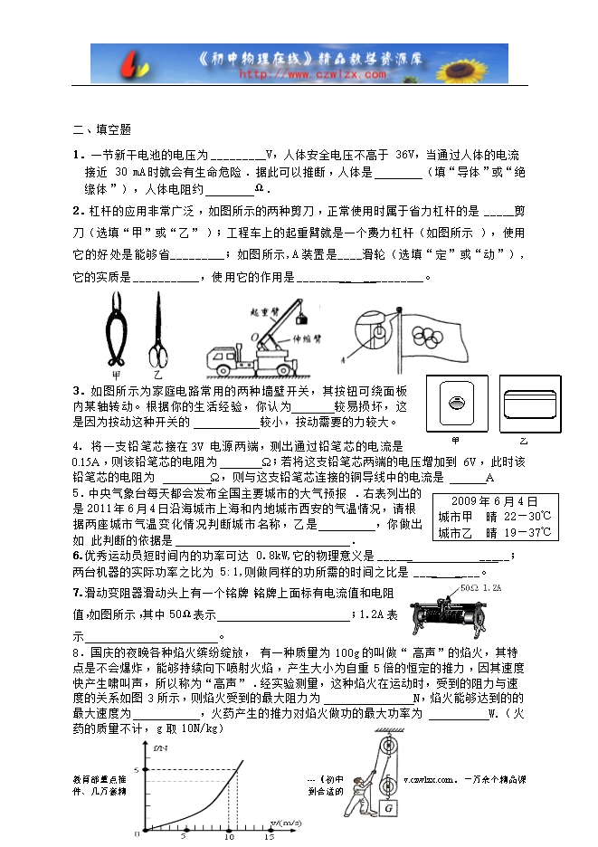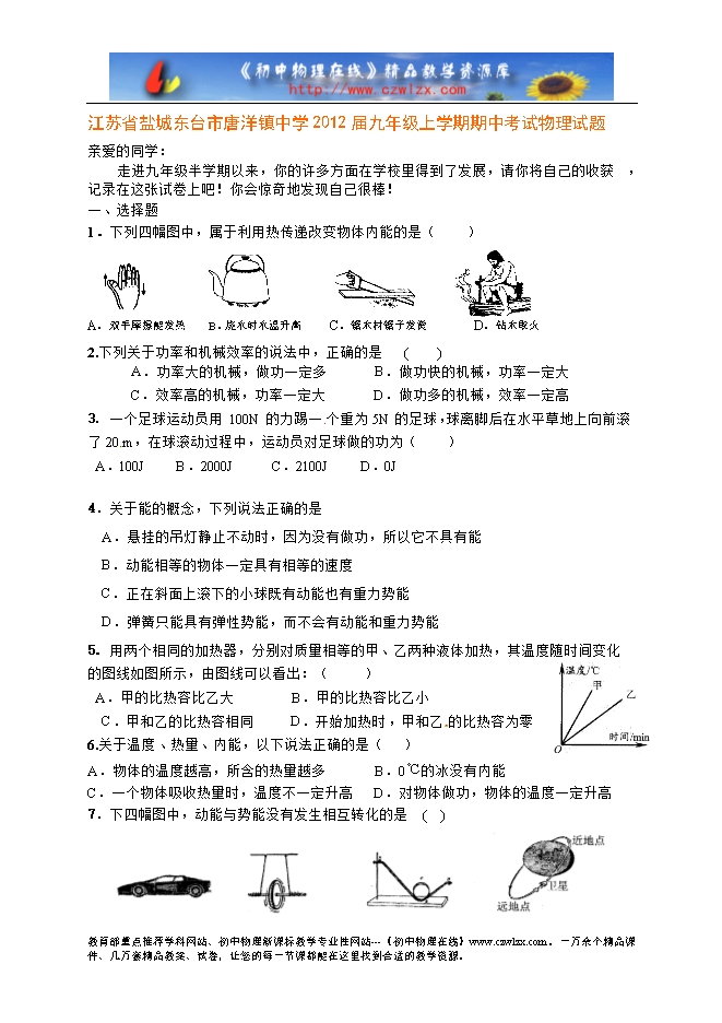 江苏省盐城东台市唐洋镇中学2012届九年级上学期期中考试物理试题(无答案)