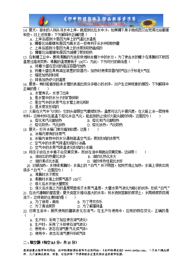 C.质量不变,体积变小,密度变小 D.质量不变,体积变大,密度变小