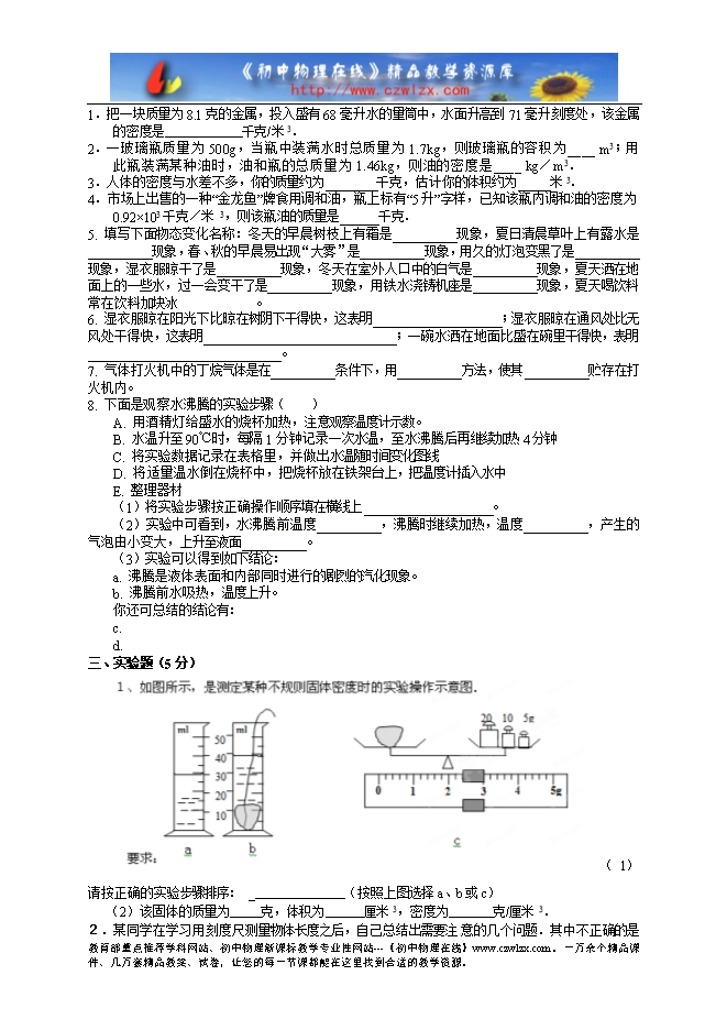 7.一桶水与一杯水相比较相同点都是由水这种物质组成,不同点是所含物质的多少不同,在物理上我们称
