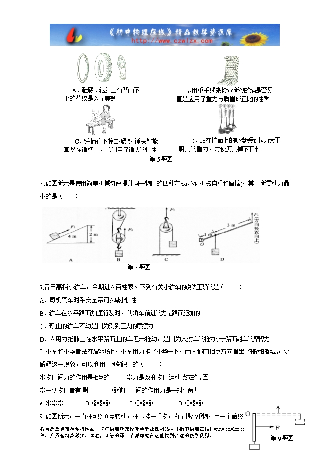 3.冬天,常看到室外的自来水管包了一层保温材料,是为了防止水管冻裂,水管被冻裂的主要原因是 ( )