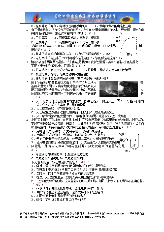 5. 汽车上的直流电动机有两种功能,一是用于汽车发动机启动时带动其转动,二是作为发电机给汽车上的蓄电池充电。当汽车发动机启动后,直流电动机充当了 发电 机,它利用了 电磁感应 原理。在此过程中, 机械 能转化为 电 能。