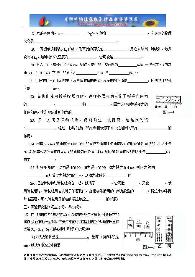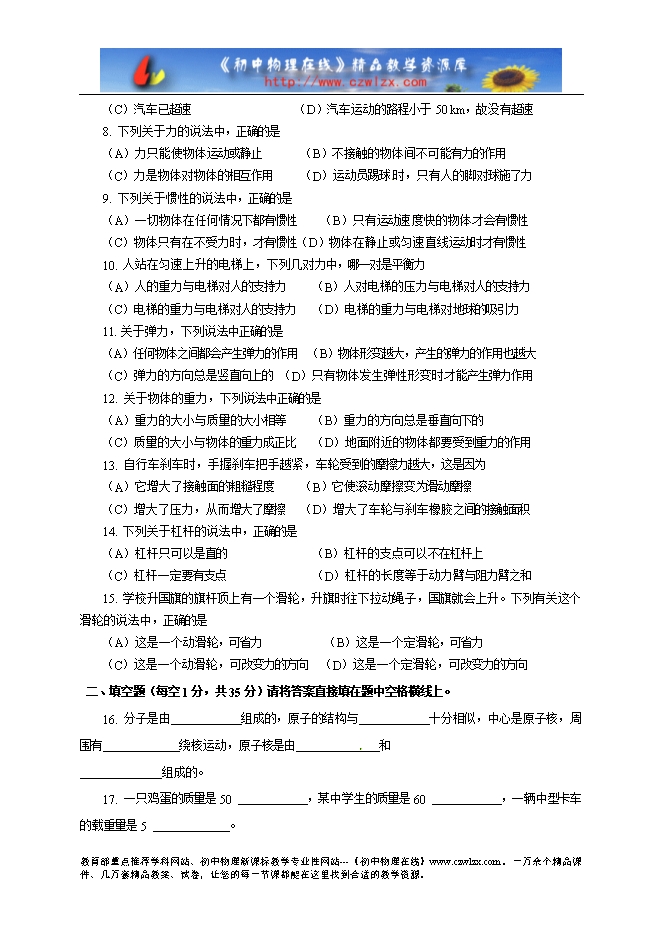 (C)质量就是物体中所含物质的多少 (D)质量在物理学中指物体的好坏
