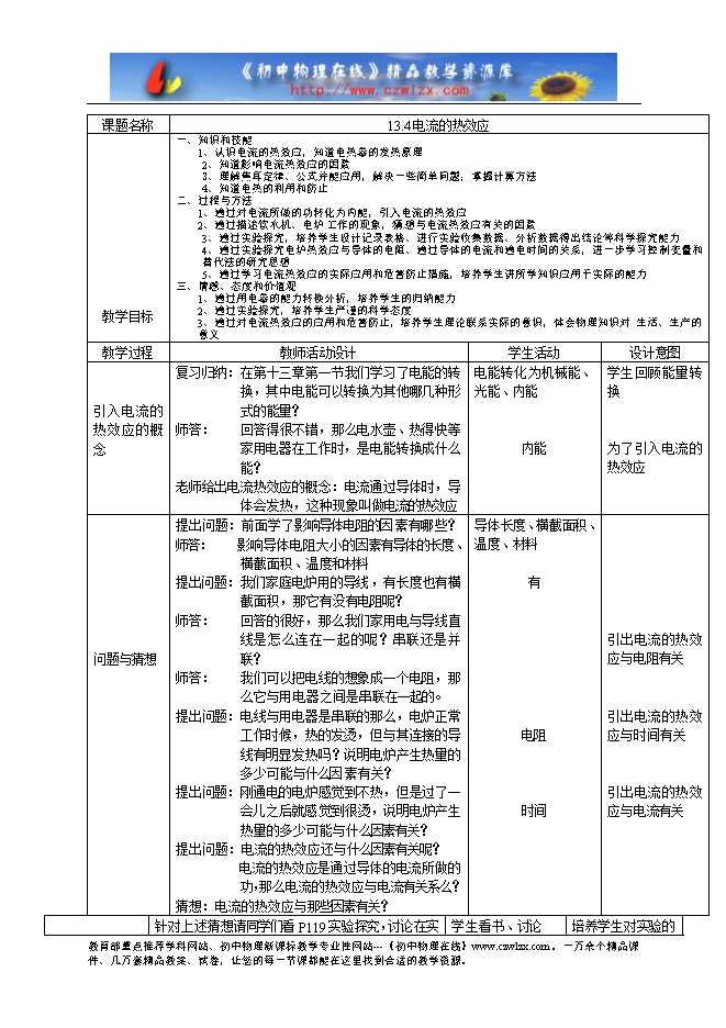 老师给出电流热效应的概念:电流通过导体时,导体会发热,这种现象叫做电流的热效应 电能转化为机械能、光能、内能