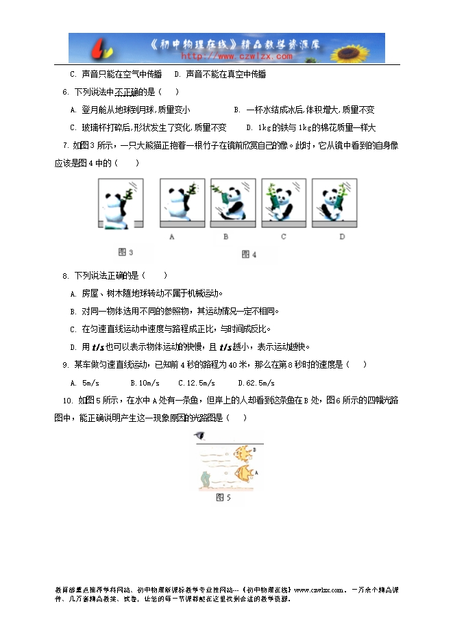 5. 运载多名航天员并实现太空行走的“神舟”七号飞船项目已成功实现,航天员在飞船内可以直接对话,但在飞船外共同作业时,他们不能直接对话,必须借助电子通信设备进行交流,原因是( )