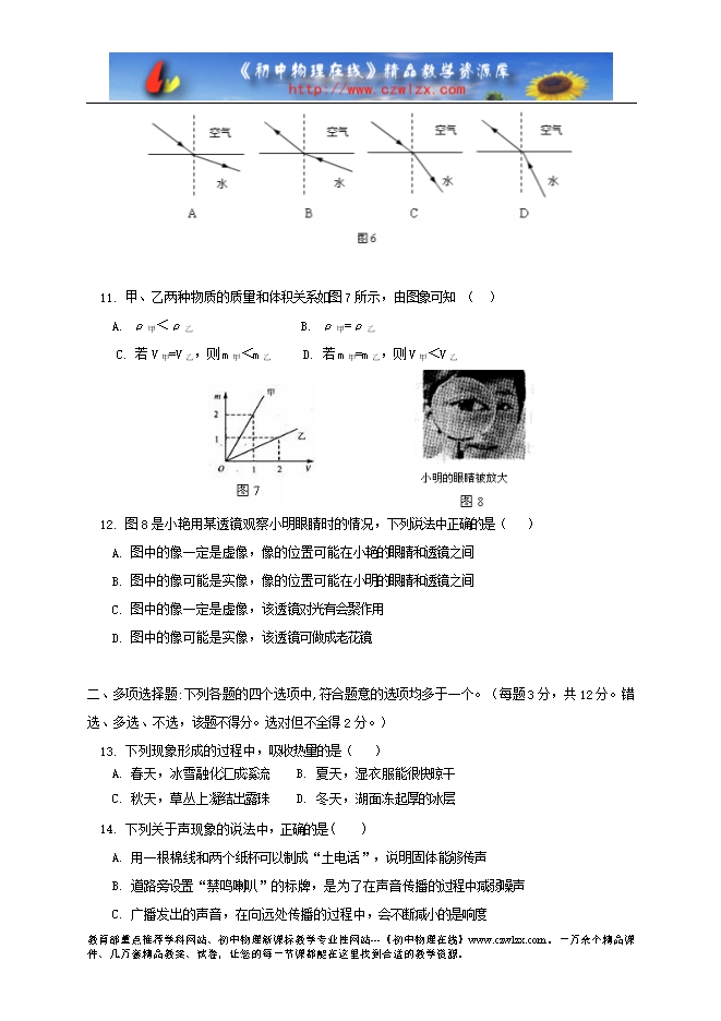 - 9702012-2013学年度中国人民大学附属中学初二物理质量检测卷及答案(试卷六,北京课改版)