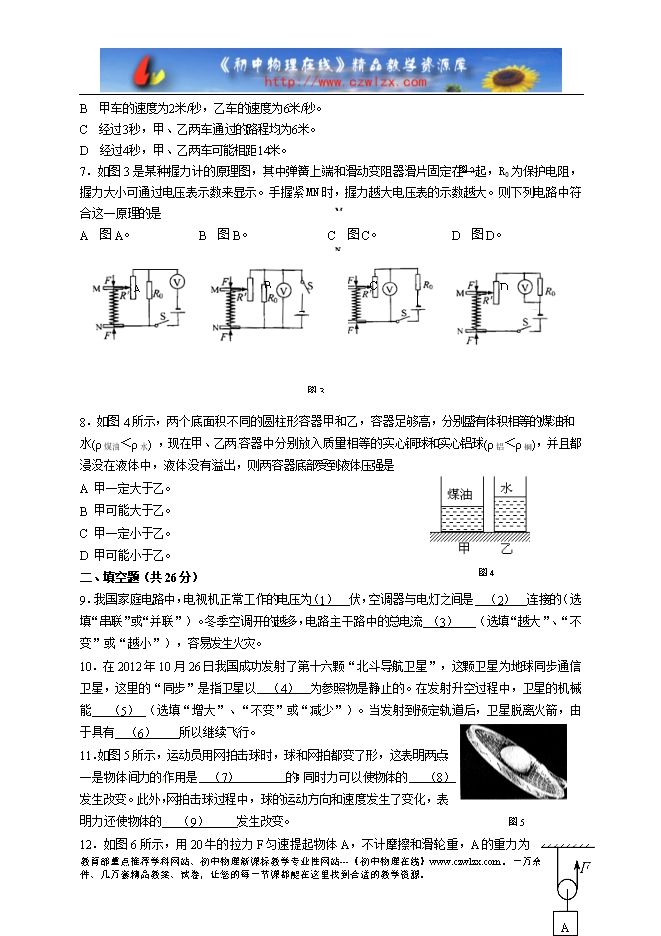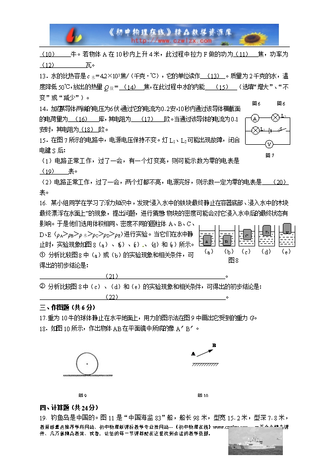 考生注意: 1.本试卷物理部分含五大题。