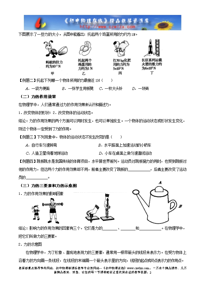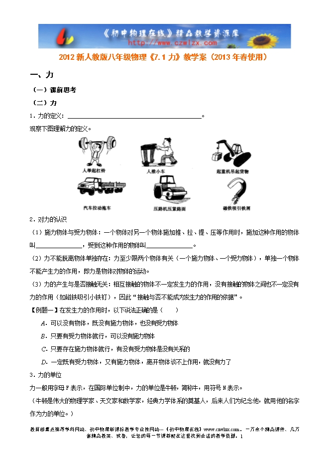 2012新人教版八年级物理《7.1力》教学案(2013年春使用)