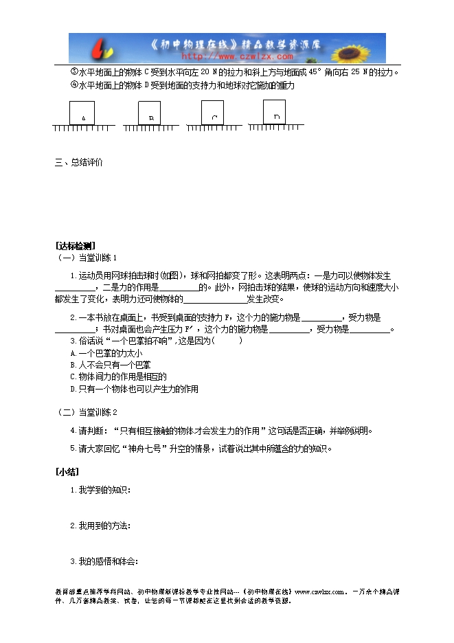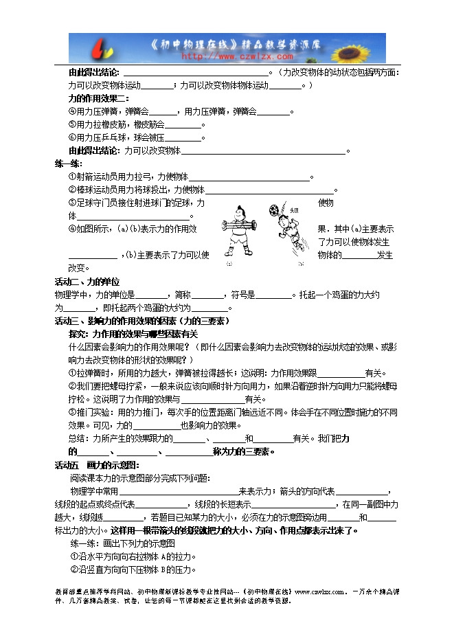 3.知道力所产生的效果:改变物体的运动状态和改变物体的形状。