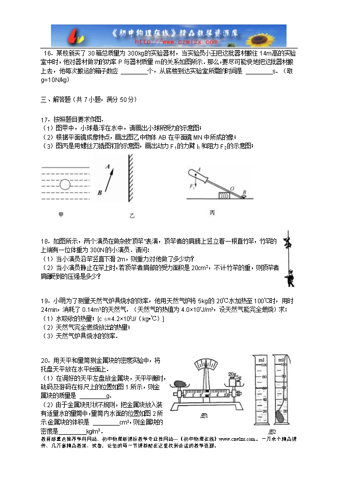 7.某人骑着一辆普通自行车,在平直公路上以某一速度匀速行驶,若人和车所受的阻力为20N,则通常情况下,骑车人消耗的功率最接近( )