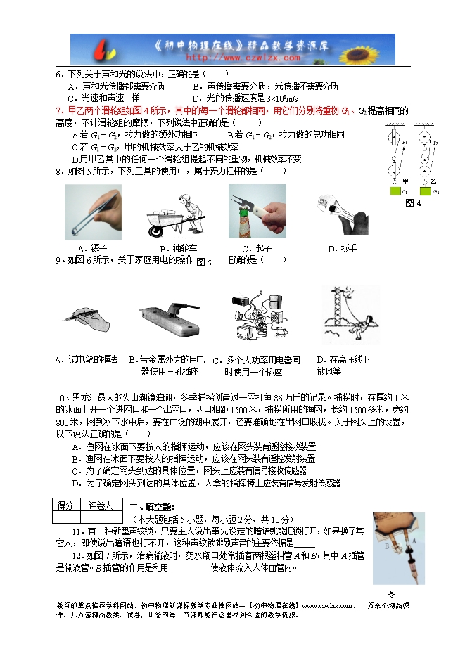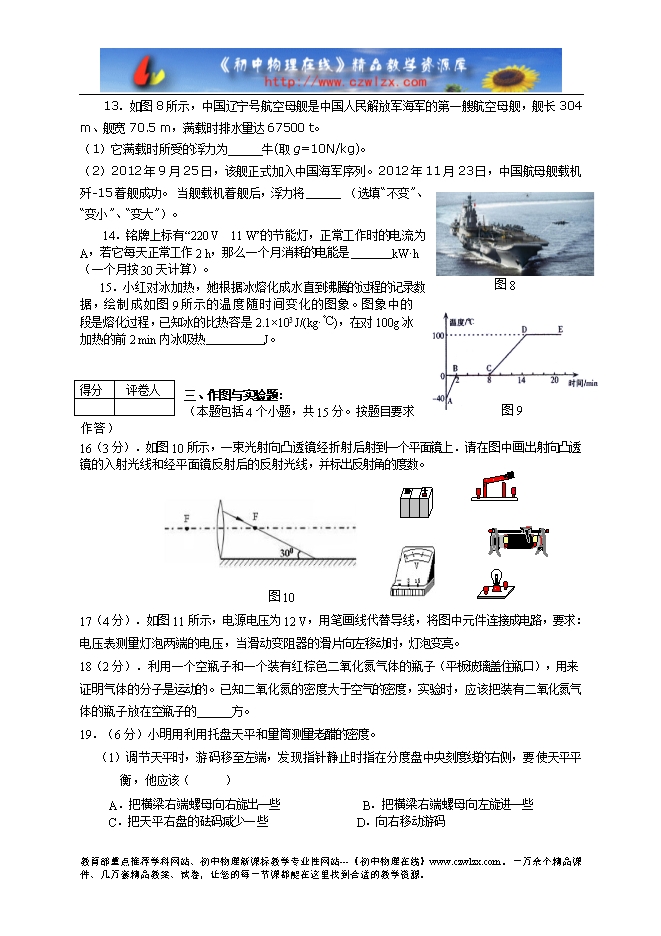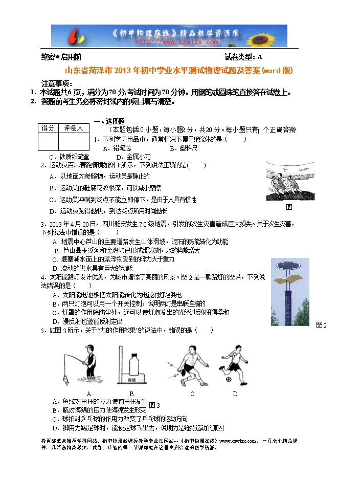 山东省菏泽市2013年初中学业水平测试物理试题及答案(word版)