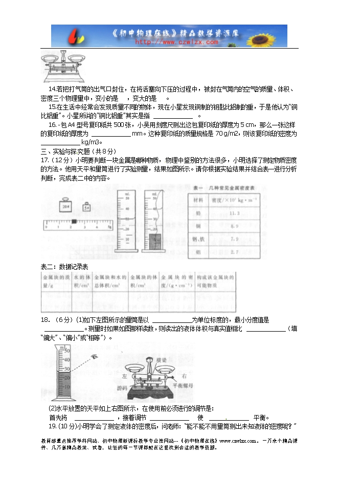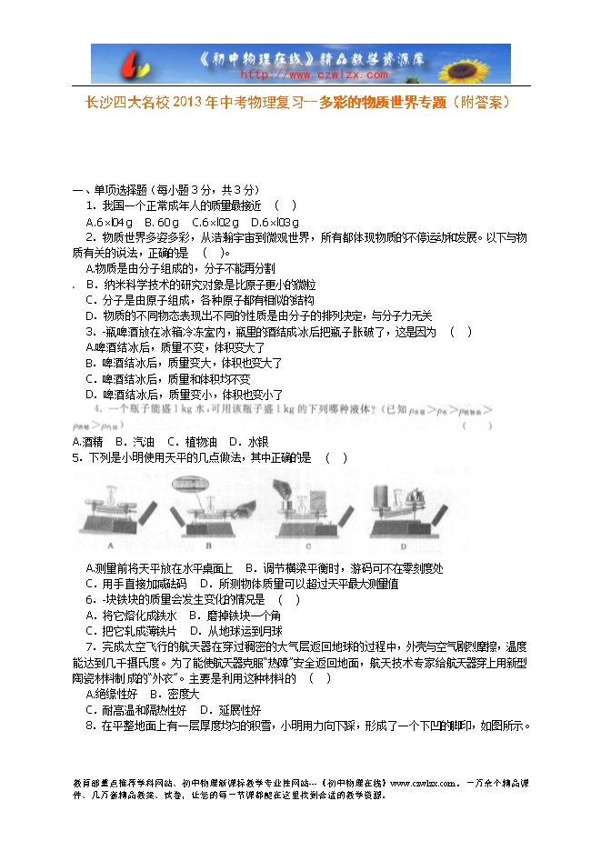 长沙四大名校2013年中考物理复习--多彩的物质世界专题(附答案)