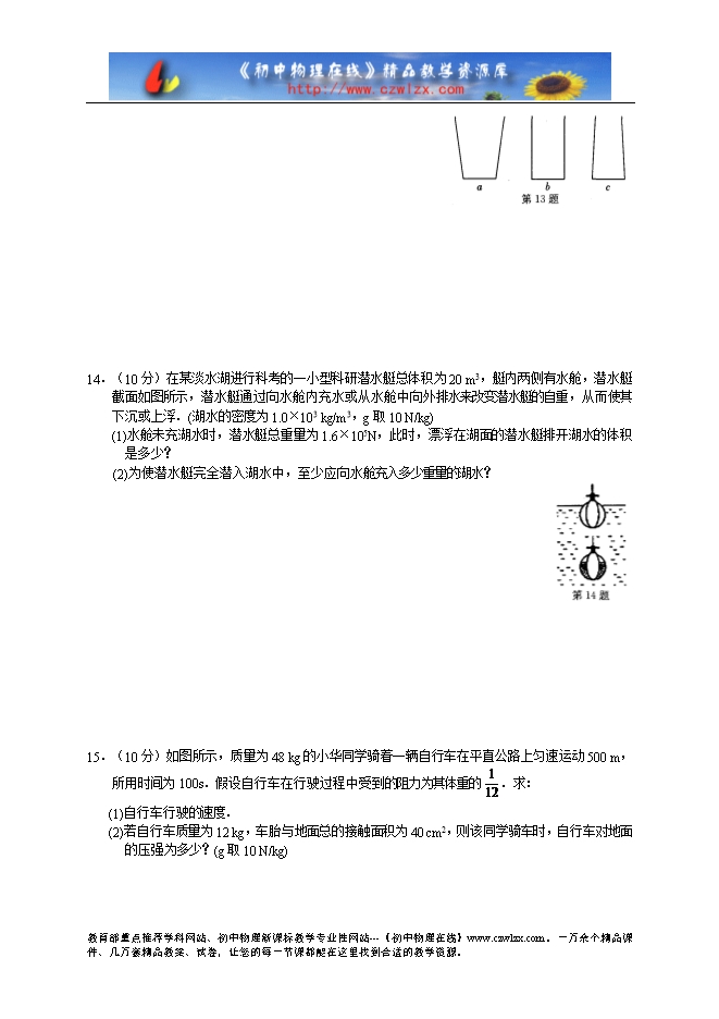 9.一只苹果的质量为140 g,体积为1.8×10-4 m3,用手将其浸没在水中时,苹果受到的浮力为_______N,松手后苹果将_______(上浮/悬浮/下沉).(g取10 N/kg)