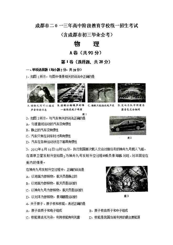 3.2012年6月16日18时56分,执行我国首次载人交会对接任务的神舟九号载人飞船,在酒泉卫星发射升空。如图3为神舟九号发射升空过程中,乘员景海鹏、刘旺、刘洋固定在舱内的情景。