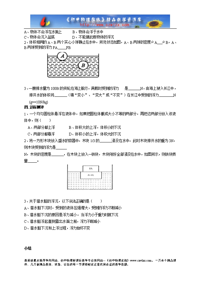 2.知道物体的浮沉条件,并能分析解决相应的物理问题